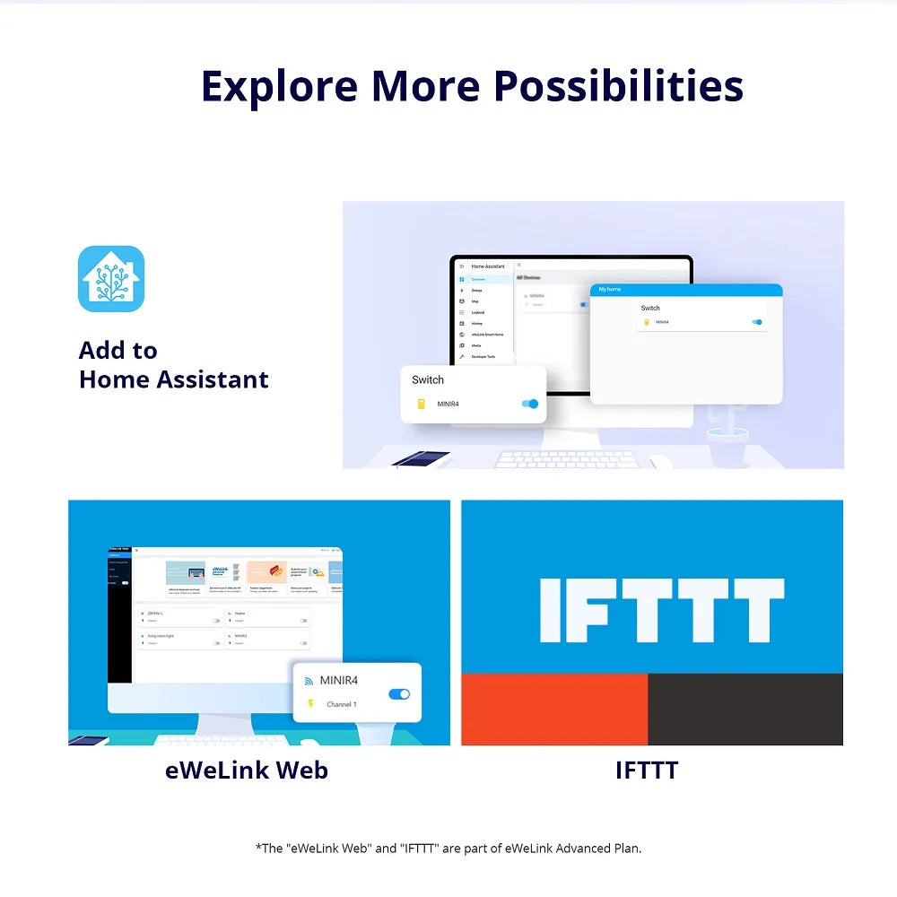 【eWeLink-Remote Control】MINIR4 is a smart switch with the gateway function of “eWeLink-Remote”. You can add “eWeLink-Remote” sub-devices, R5 and S-MATE, after pairing with MINIR4, both R5 and S-MATE can act as remote controllers to control MINIR4 locally through the eWeLink-Remote signal.